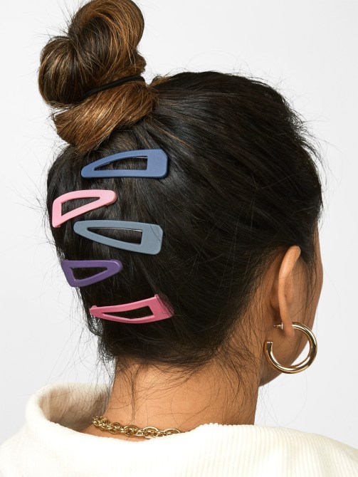 The matte finish on these colorful barrettes makes them grown-up, but still playful. Clip on one or all and add a pop of color to a down ‘do or a bun.