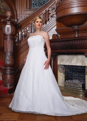 Impression Bridal has a full line for curvy girls that is designed to make brides feel comfortable and look fabulous on their big day by accentuating their feminine figures. The line runs from size 14 to 30.