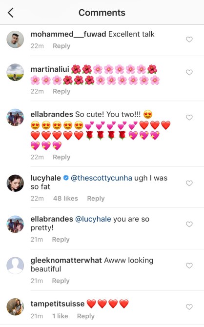 There are so many things wrong with Hale’s comment, which was a response to something her friend, Scotty Cunha, said. For one, Hale is not fat in the slightest in the photo, and labelling her body as so perpetuates unrealistic body standards. Secondly, by including the word “ugh,” Hale suggests her disgust at the idea of being fat, which is really just a body type and nothing more. (Reminder: Fat and attractive are not mutually exclusive.)