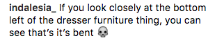 On Thursday, Hadid took to her Instagram to share a sexy mirror selfie of her in a hot red bikini. The picture featured her with oil-damp skin, wet hair, a red bikini, and a pose showing off her supermodel curves. The Instagram didn’t seem out of the ordinary compared to Hadid’s other countless bikini pictures—until fans noticed one strange detail in the background: a curved dresser.