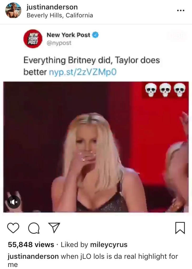 Though Cyrus has shaded Swift in the past, her most recent diss came on Saturday when she liked an Instagram video criticizing the “Look What You Made Me Do” singer’s career. The video was a reaction to a New York Post article claiming that “everything” Britney Spears did, Swift did better. In response to the article (because no one can live up to Britney), one fan edited together a video of celebrities, including Demi Lovato and Lady Gaga, laughing to suggest that they were laughing at the headline.
