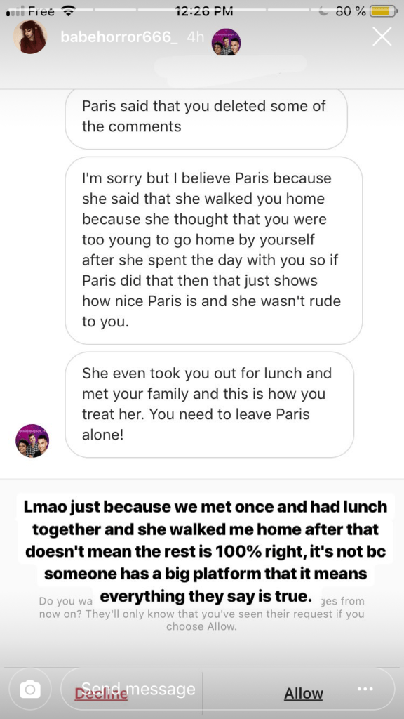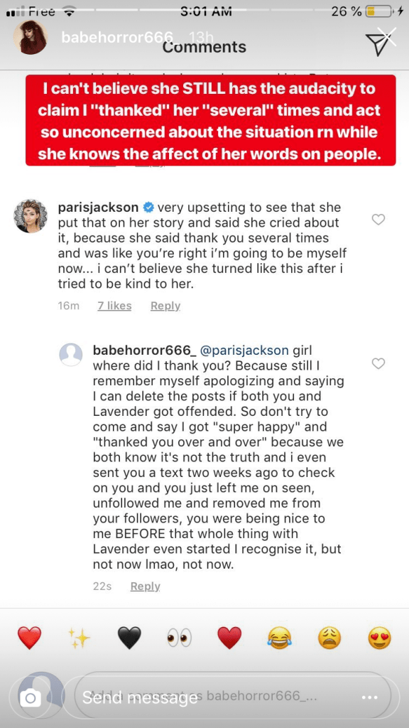 Paris Jackson is clearing her name. The 20-year-old model took to her Instagram on Wednesday after she was accused of being mean to a fan in leaked direct messages.