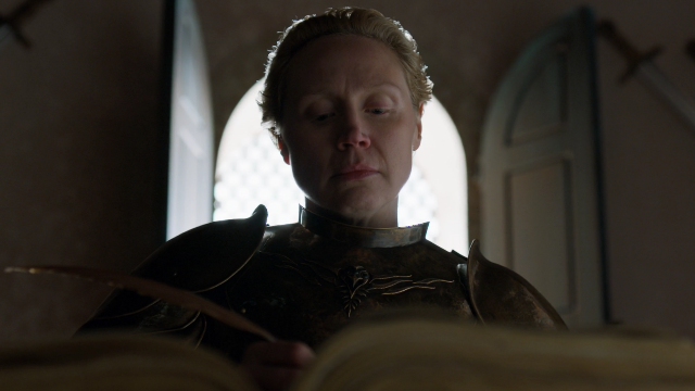 One of the most touching moment during the episode’s final scenes was Brienne sitting down to write about Jaime in a book on the knights of the realm who had served the crown in the past. It clearly took a lot out of Brienne as she tried to find the right words to memorialize her first love, but we have to wonder: will Brienne ever find someone like Jaime (or maybe more emotionally available and able to love than Jaime) again? We hope so because homegirl deserves it.