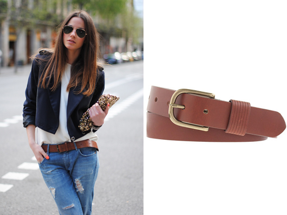 Turn your boyfriend’s boring brown belt into a statement piece by wearing it with low-slung jeans for casual days about town. Way too big on you? Knot it (instead of properly belting it) and throw it around your waist over a dress.