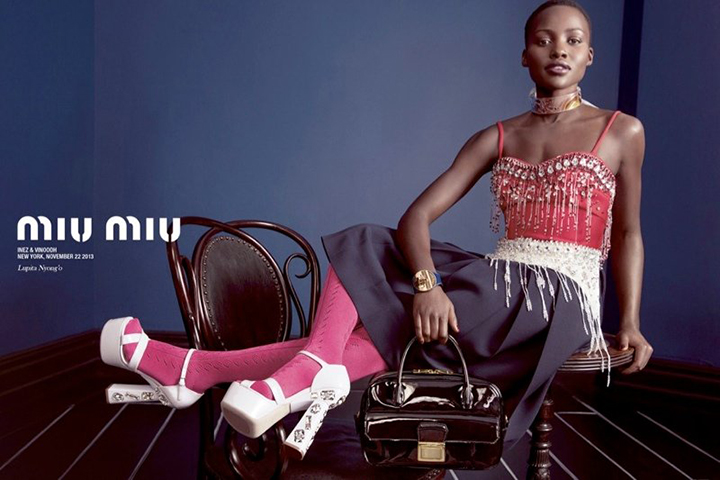 Whatever happens with her acting career, one thing’s abundantly clear: Nyong’o is now poised to become a major fashion face, too. She’s one of four stars—along with  Elle Fanning, Elizabeth Olsen, and Bella Heathcote—to front Miu Miu‘s latest campaign, then there’s the stunning Dazed & Confused cover on which she’s wearing bold Prada, and photographed by Sharif Hamza.