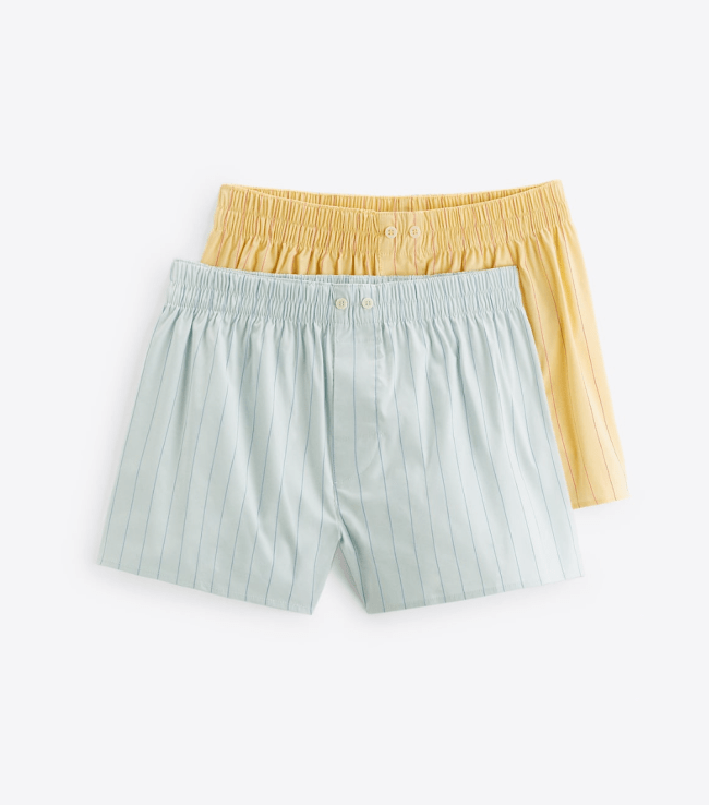 If you like the mini short trend and want to try out the boxer look, a shorter pair of men’s boxers is the way to go. This two-pack includes a summery yellow hue that I can’t get enough of.