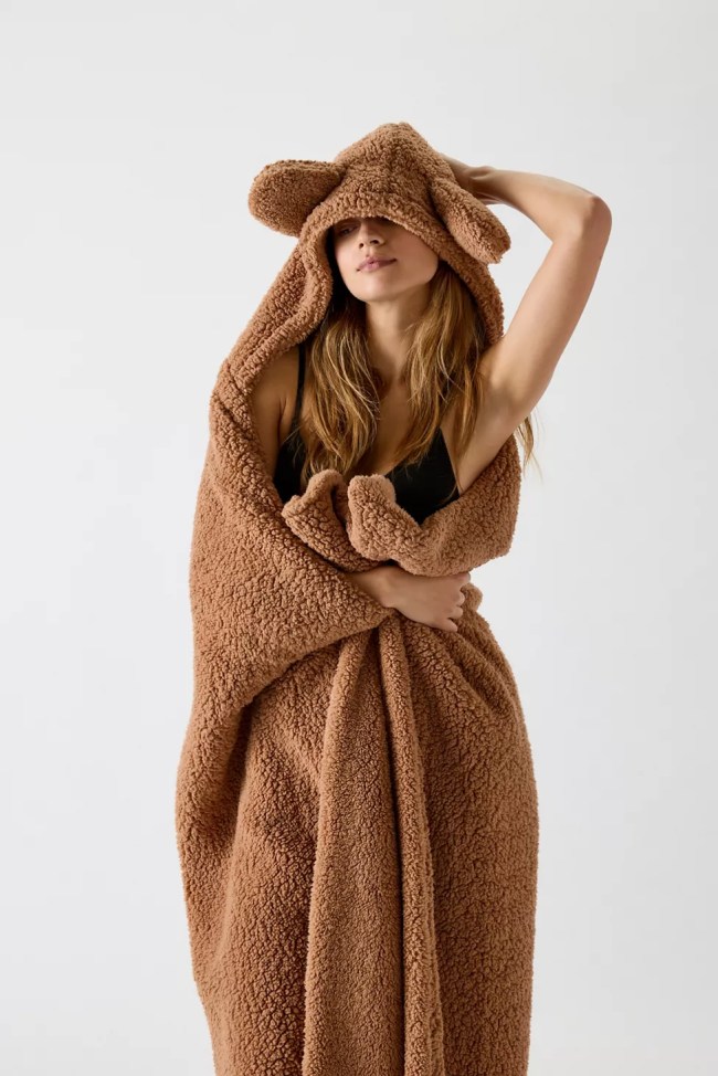 This shearling fleece wearable throw blanket from Urban Outfitters is so cute.