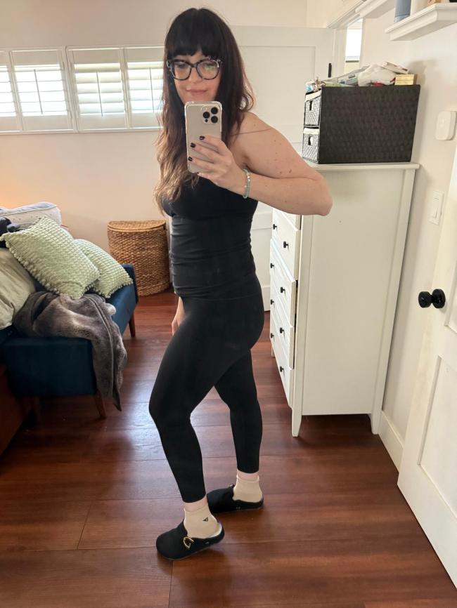 Senior commerce director, Gina Vaynshteyn, was able to test a pair: “These really do look and feel just like the Aligns, which I also have.” She adds, “They work similarly, too, sucking everything in and providing support and comfort, whether I’m taking the dogs on a walk, doing a quick yoga routine in the morning, or lounging on the couch. I’m six months postpartum, so any kind of pants that give me more support while making me feel comfortable are key. And I think I look pretty fly in them? They have this sculpting effect for my now-bigger body, and the design makes me feel so much more confident.”