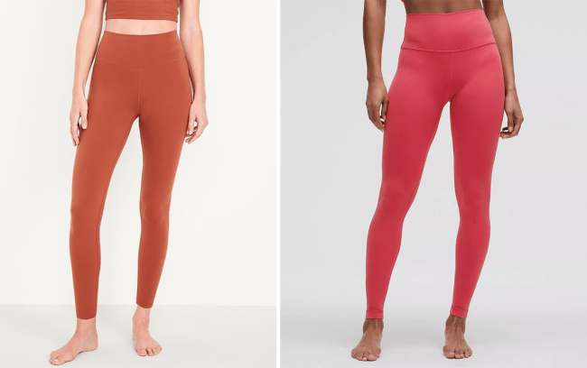 Left: Old Navy High-Waisted StudioSmooth 7/8 Leggings; Right: Lululemon Align High-Rise Pant 28″.Old Navy; Lululemon.