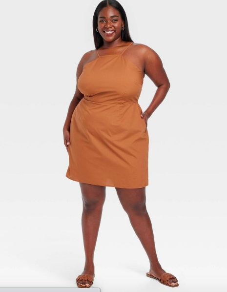 The halter neck and on-trend neutral color make this dress a stand-out. It’s available in sizes XS to 4X and is also available in mustard orange and white. IDK about you, but I’m definitely picking up this brown color.