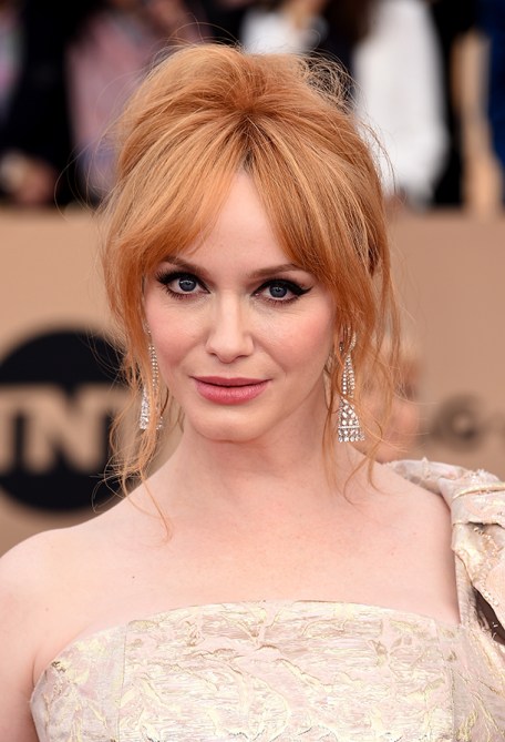 We’re totally into that messy chignon and parted bangs combination that Christina Hendricks picked for the SAGs, but it’s that perfect cat-eye that really impressed us.