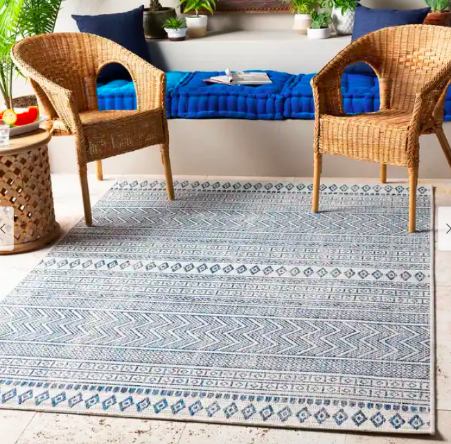 Add a wicker coffee table on top of this geometric-style rug, and you’ve got the perfect mixed-media boho chic setup of your dreams.