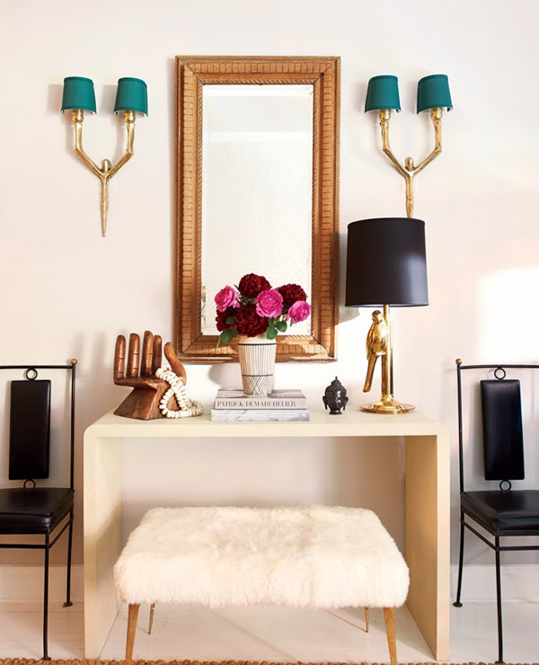 Don’t be afraid to get creative when decorating with the color pink! Source cool objects in the color—everything from mini lucite figures to pink shoes—placing them on a coffee table, a nightstand, or a mantel.