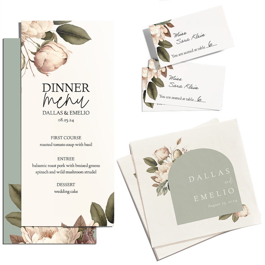 The day of details, which include welcome signs, seating charts, ceremony programs, place cards, menu cards, cocktail napkins, etc., are the cornerstone of the wedding’s theme and backdrop. Ensuring the theme is carried all the way through from start to finish is crucial and shouldn’t be taken lightly as wedding planning winds down. VistaPrint knows you want to get all the details right, and you can while also keeping the style true to who you are.