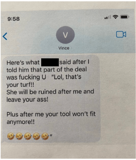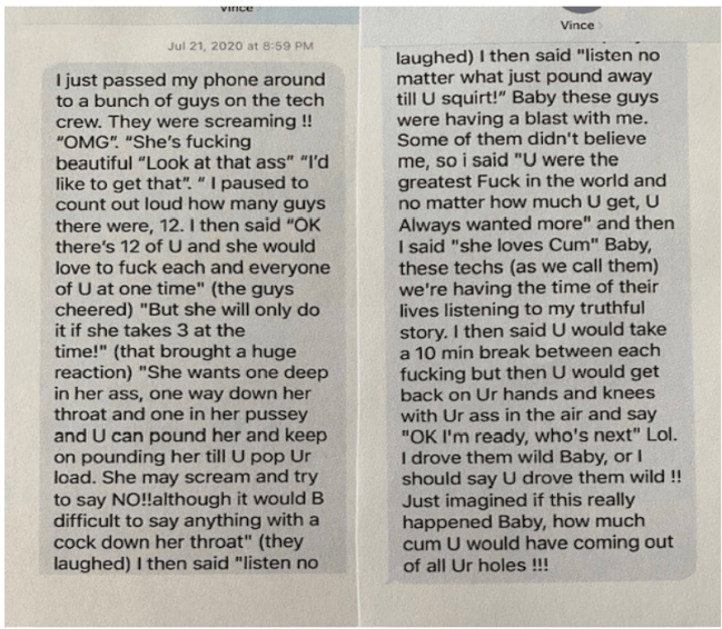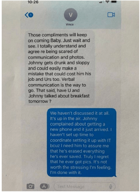 Vince McMahon texts Grant that he’s been sharing explicit pictures of her with the WWE crew.